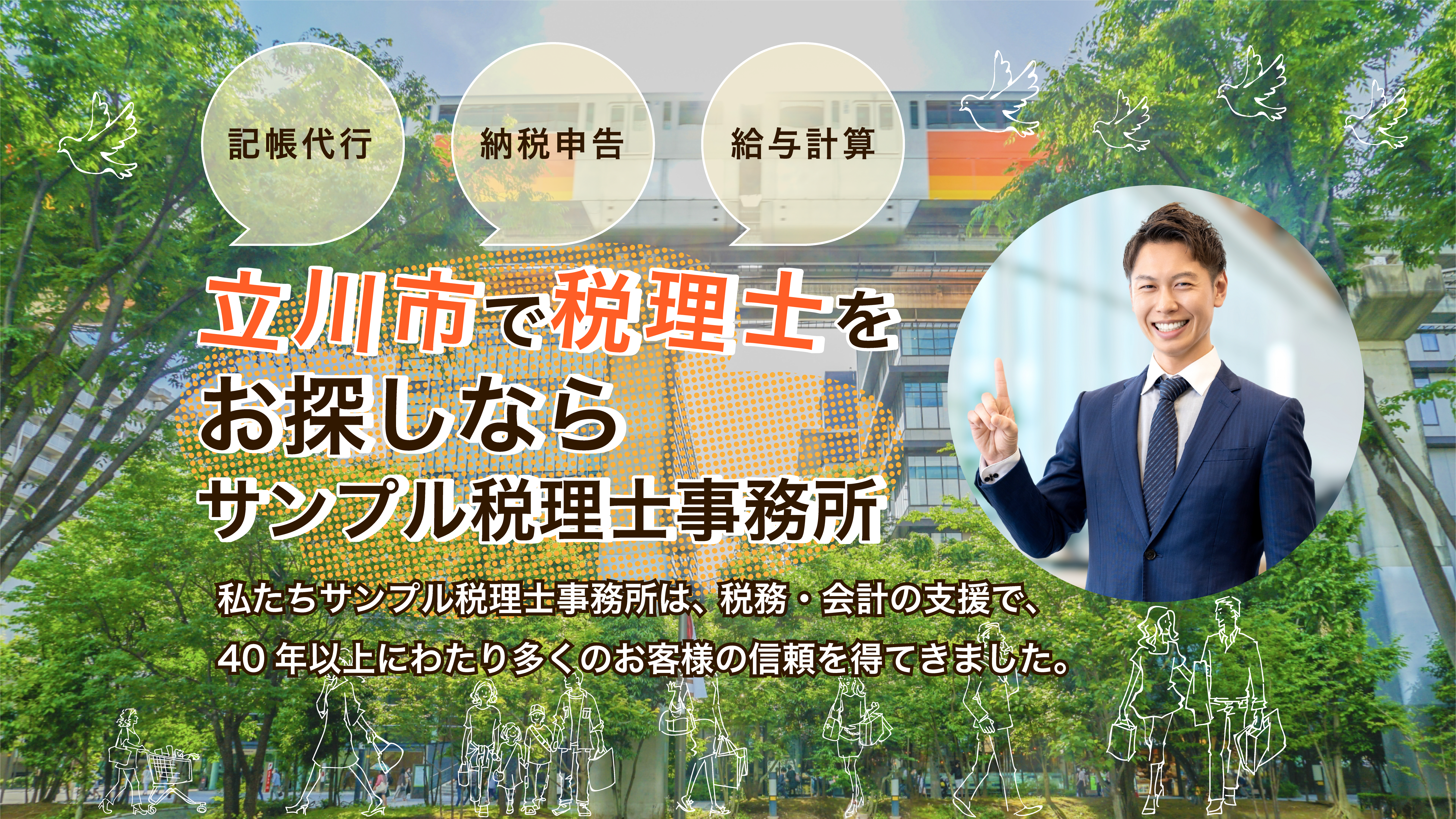 私たちサンプル社労士事務所は、1980年の創業以来、40年以上にわたり、確かな専門知識と誠実なサービスで、多くのお客様の信頼を得てきました。